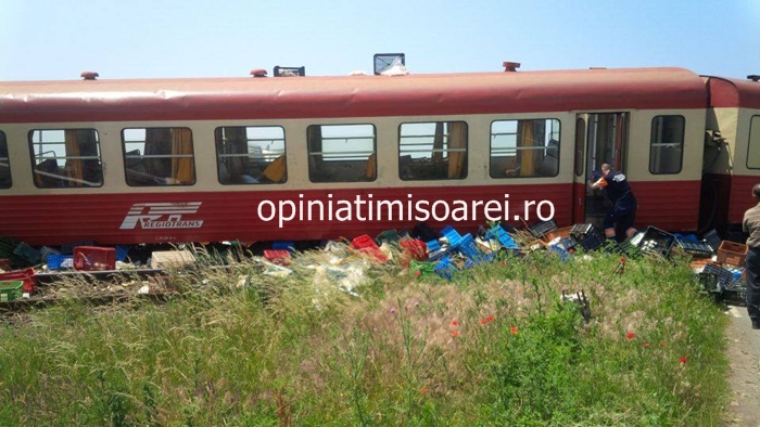 TIMISOARA. Teribil accident feroviar la doi pasi de Timisoara. O ciocnire violenta intre un tren si un TIR au dus la deraierea unui vagon, la pasajul dintre Satchinez si Hodoni.