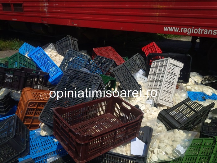Mai multe persoane au fost ranite: calatori in tren si soferul TIR-ului, care transporta produse de patiserie congelate.