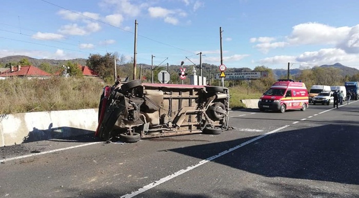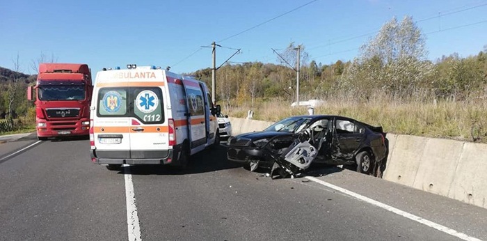 Soferul autoturismului lovit de microbuz si alti doi pasageri au fost raniti.