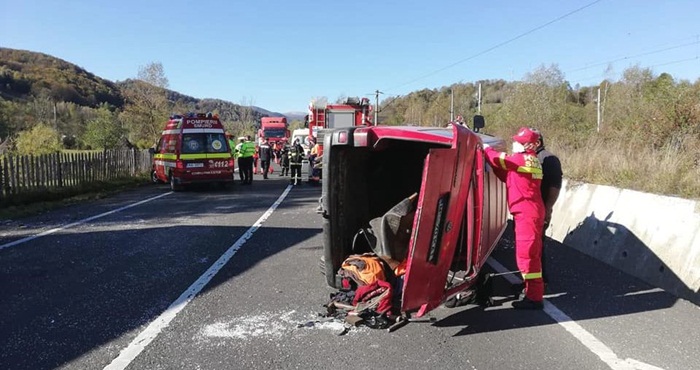 Accidentul a avut loc in apropierea localitatii hunedorene Banita. Soferul unui tir nu a pastrat distanta regulamentara fata de un microbuz din fata sa, care se pregatea sa faca virajul la stanga pentru a intra pe un alt drum.