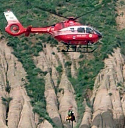 Oamenii care se aflau in apropierea prapastiei au sunat la 112, iar la fata locului au ajuns echipaje ale pompierilor si salvamontistilor, fiind solicitata si interventia elicopterului SMURD.