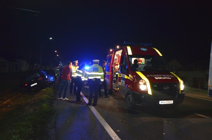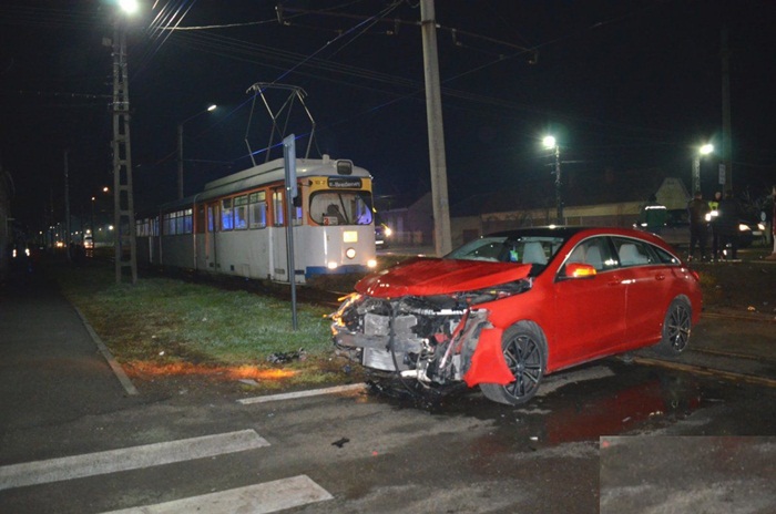 Accidentul a avut loc la Arad, dupa lasarea serii, in apropiere de centrul orasului. Soferul unui Mercedes care venea dinspre centrul orasului a lovit in plin o masina Volkswagen, pe care a proiectat-o pe liniile de tramvai din zona.