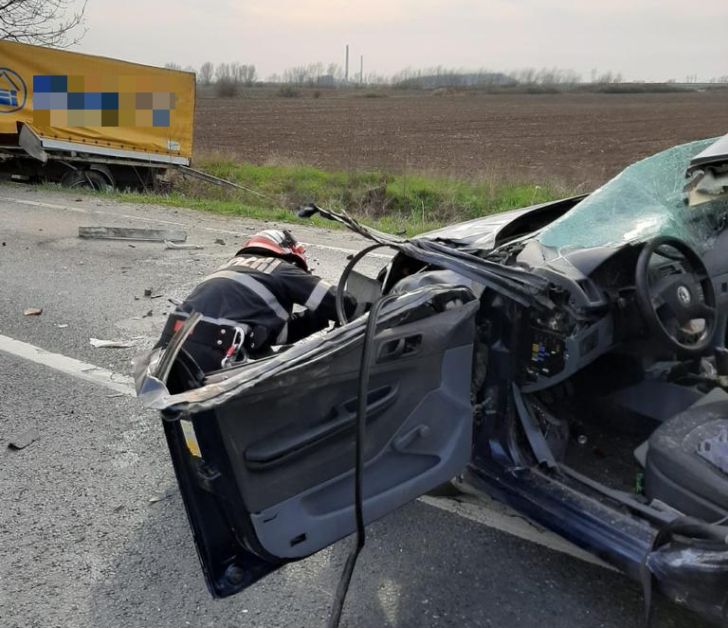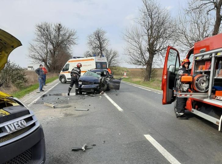 S-a dat alarma joi dupa amiaza dupa ce un autoturism si un camion s-au izbit puternic pe o sosea din vestul tarii.