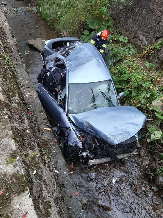 Totul s-a intamplat pe soseaua care leaga Resita de Valiug. Soferul unui autoturism a pierdut controlul volanului s-a rasturnat cu masina intr-un sant adanc de cativa metri. Masina a aterizat pe roti, s-a facut praf, iar soferul a ramas prins intre fiare.