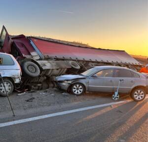 Din primele verificări efectuate la fața locului a reieșit că un bărbat de 56 de ani a condus un tir pe Centura Lugojului, dinspre Caransebeș înspre Timișoara, iar la un moment dat ar fi pierdut controlul asupra direcției de mers, a părăsit partea carosabilă, intrând în coliziune cu două autoturisme parcate, ulterior răsturnându-se.