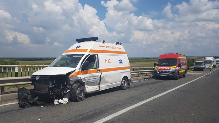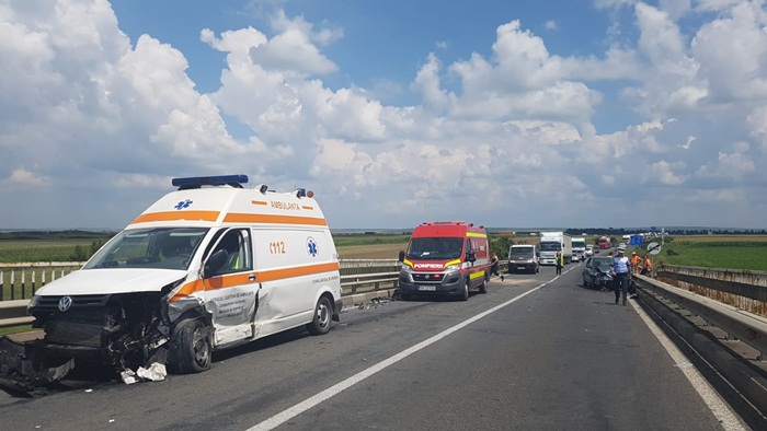 “A avut loc o coliziune intre un autoturism si o Ambulanta. Soferul masinii se indrepta catre Lugoj pe DN 6, la un moment dat a patruns pe contrasens, nu se stie din ce motiv, unde a lovit o Ambulanta aflata in misiune. In urma impactului au rezultat 5 victime, soferul autoturismului, vinovat de producerea accidentului, pasagerul de pe scaunul din dreapta al masinii, precum si asistenta aflata in Ambulanta, dar si pacientul si mama pacientului care era transportat. S-a intocmit dosar penal pentru vatamare corporala din culpa“, a declarat pentru opiniatimisoarei.ro Ionut Sirbu, purtator de cuvant al IPJ Timis.
