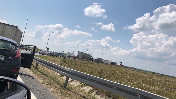 Traficul este blocat in zona, iar cozile de masini se intind pe cativa kilometri.