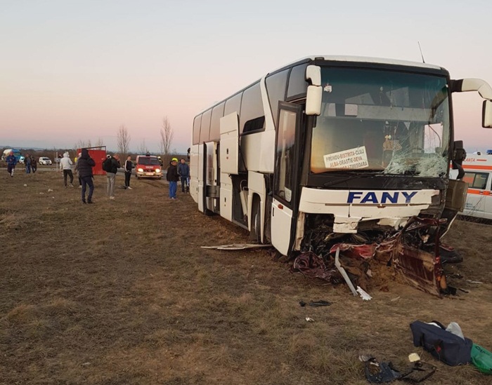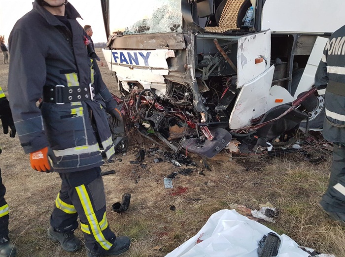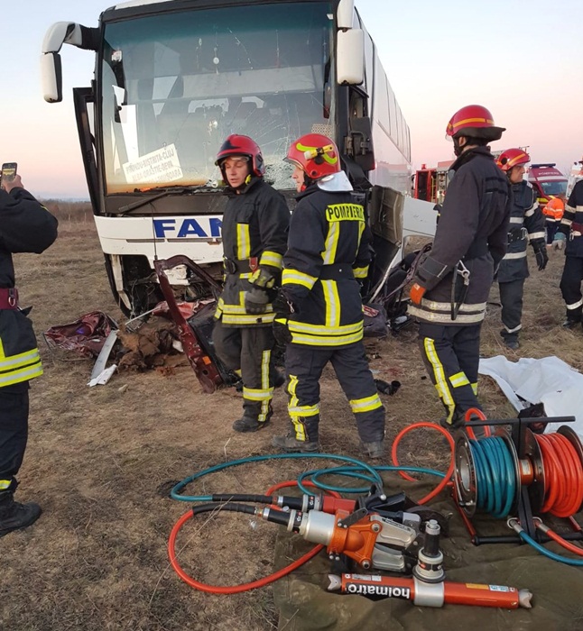 ”Accidentul s-a produs pe DN68A, pe raza localitatii Sudrias. In autobuz se aflau 12 persoane dintre care 4 ranite usor (1 femeie de 62 de ani, transportata la spital cu contuzie de piramida nazala). In autoturism se afla un barbat care a decedat. Circulatia este blocata pe un sens. Pompierii au actionat cu o autospeciala de stingere cu modul de descarcerare, o autospeciala de descarcerare, 2 echipaje SMURD, 2 autospeciale de transport personal si victime multiple, un ofiter si 15 subofiteri. De asemenea, la locul interventiei sunt 2 ambulante SAJ si echipaje de politie”, a transmis ISU Timis.