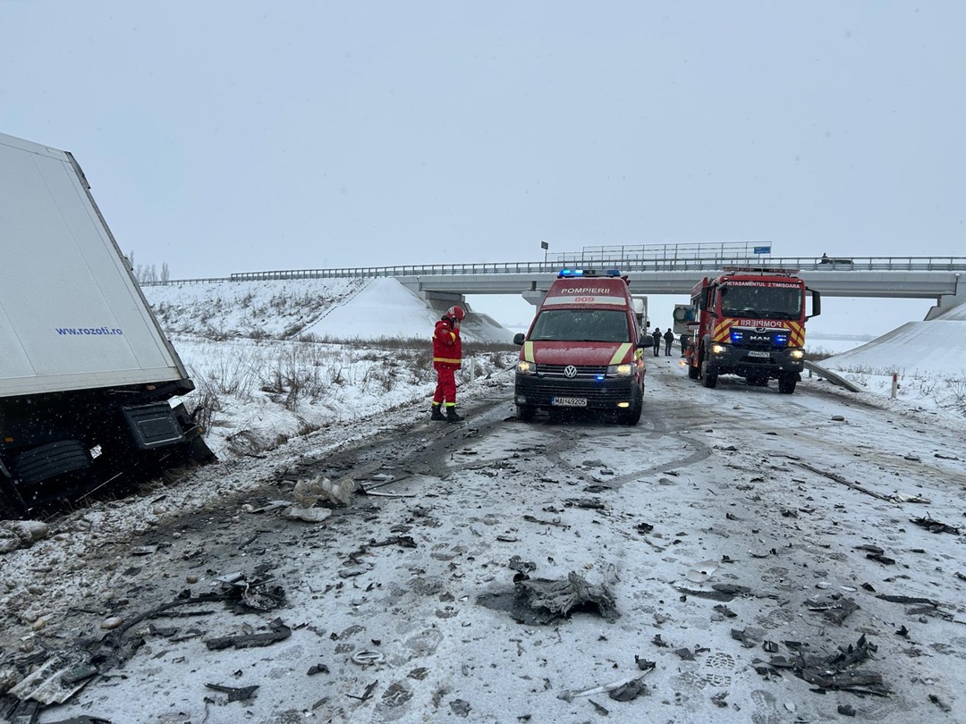 Pe Centura Sud Timișoara intervenisera două utilaje de deszăpezire chiar înainte de producerea accidentului, întrucât începuse să ningă, spun reprezentanții DRDP Timișoara.