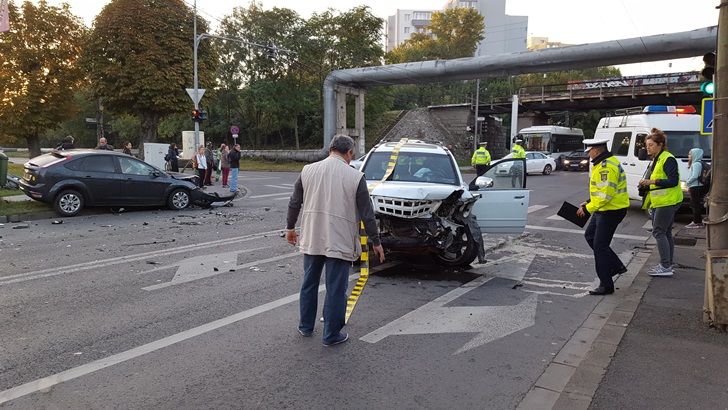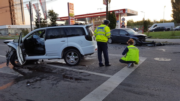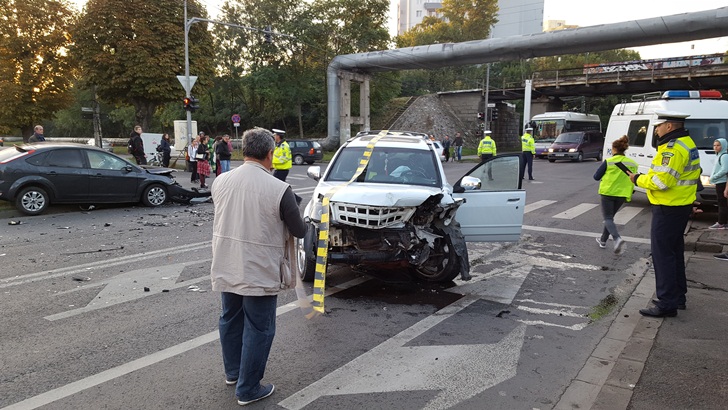 TIMISOARA. Circulatie data peste cap intre mall si Piata Marasti in aceasta dimineata la Timisoara. Un accident s-a produs chiar in intersectia cu strada Demetriade. Doua masini s-au lovit violent, iar soferii au fost raniti.