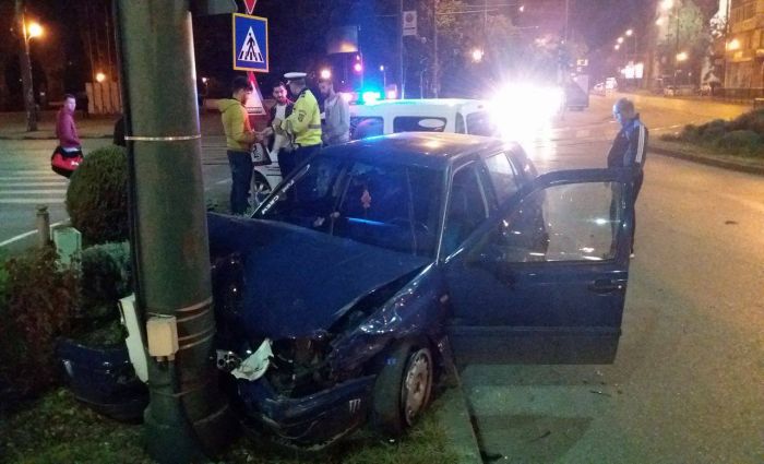 TIMISOARA. Accident, vineri seara, in fata Catedralei Mitropolitane din Timisoara. O soferita care venea dinspre Spitalul de Copii a pierdut controlul volanului si a intrat in plin intr-un stalp. Se pare ca aceasta a incercat sa evite o alta masina care s-a apropiat periculos.