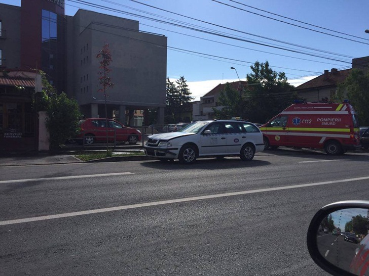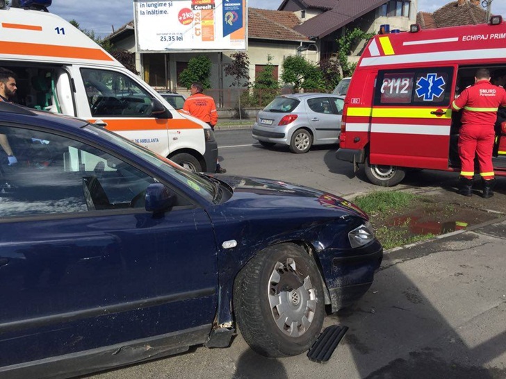 TIMISOARA. Ciocnire violenta intr-o intersectie din Timisoara, se pare, din pricina unei neacordari de prioritate. Un Passat a izbit un taxi.