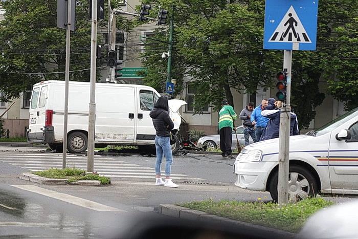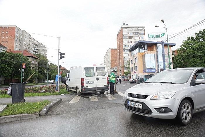 TIMISOARA. Accident in intersectia de la Fantana Punctelor Cardinale din Timisoara, sambata dupa-amiaza. Un moment de neatentie a fost suficient pentru ca un BMW si o duba sa se ciocneasca.