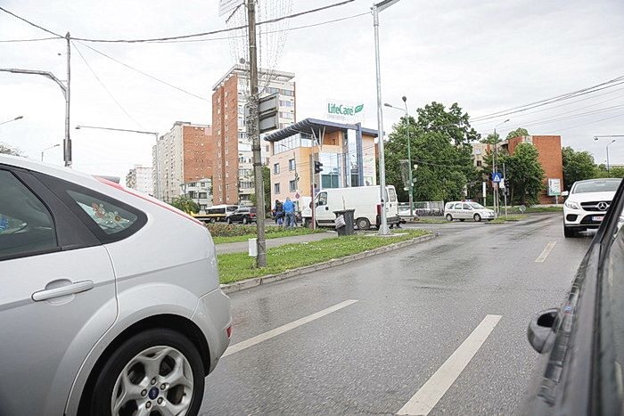 Totul s-a petrecut in jurul orei 15.30, in intersectia ale carei semafoare sunt pe galben intermitent, astfel ca soferii trebuie sa circule cu ceva mai multa grija.