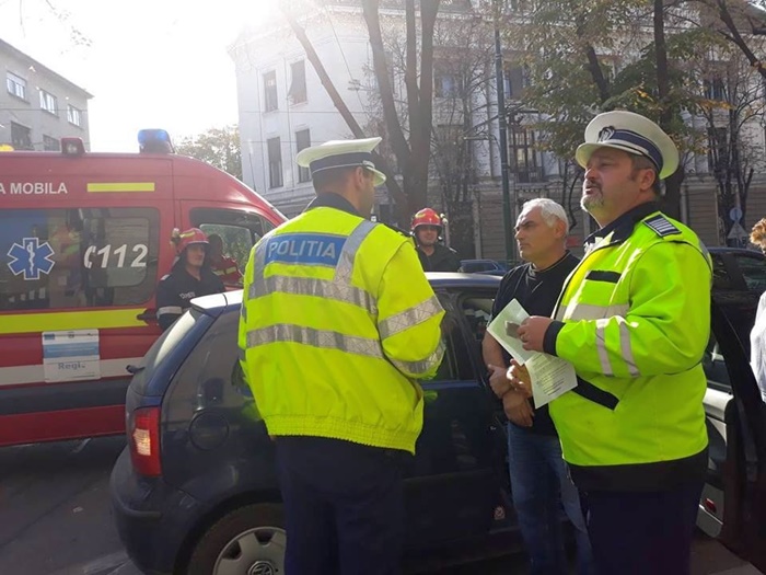 TIMISOARA. Accident miercuri la orele pranzului pe B-dul Revolutiei din Timisoara. Doua masini s-au izbit la intersectia cu Vasile Goldis, langa Colegiul Ana Aslan.