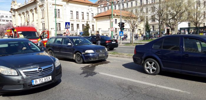 Nu mai putin de 4 masini s-au izbit pe b-dul Bratianu, imediat dupa trecerea de pietoni dinspre Posta Mare.