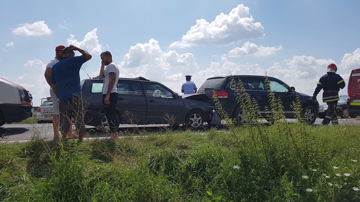 TIMISOARA. Accident joi dupa-amiaza aproape de Timisoara. Cinci masini, in care se aflau 9 oameni, s-au lovit.