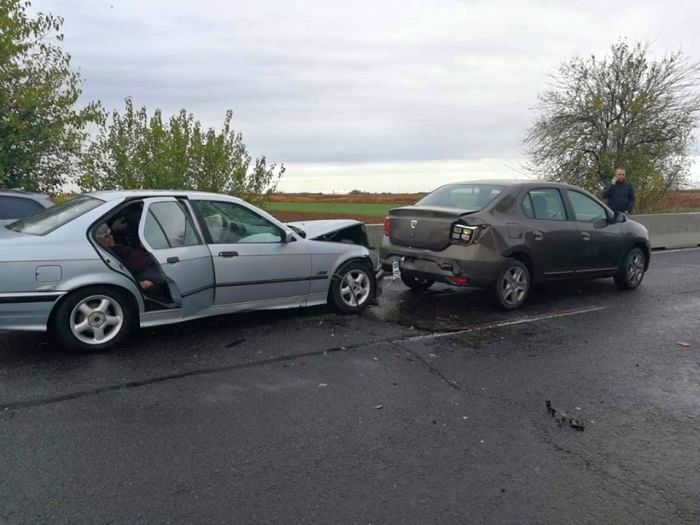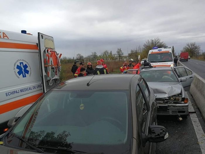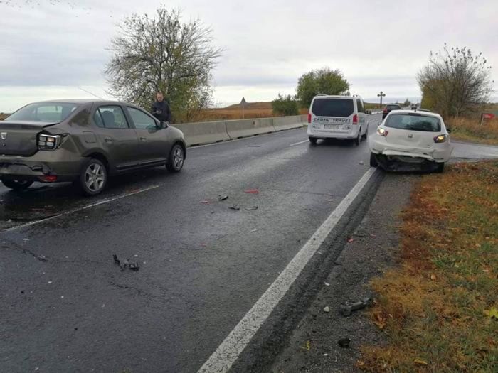 3 masini s-au izbit dupa ce un sofer nu a pastrat distanta regulamentara fata de autoturismul din fata lui. Acesta a izbit masina si, in urma impactului, a ricosat pe cealalta banda unde a mai lovit inca una.