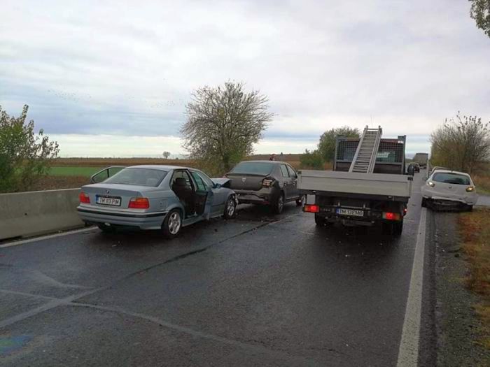 O femeie din autoturismul soferului neatent a fost ranita, iar o ambulanta a transportat-o de urgenta la spital in Timisoara.