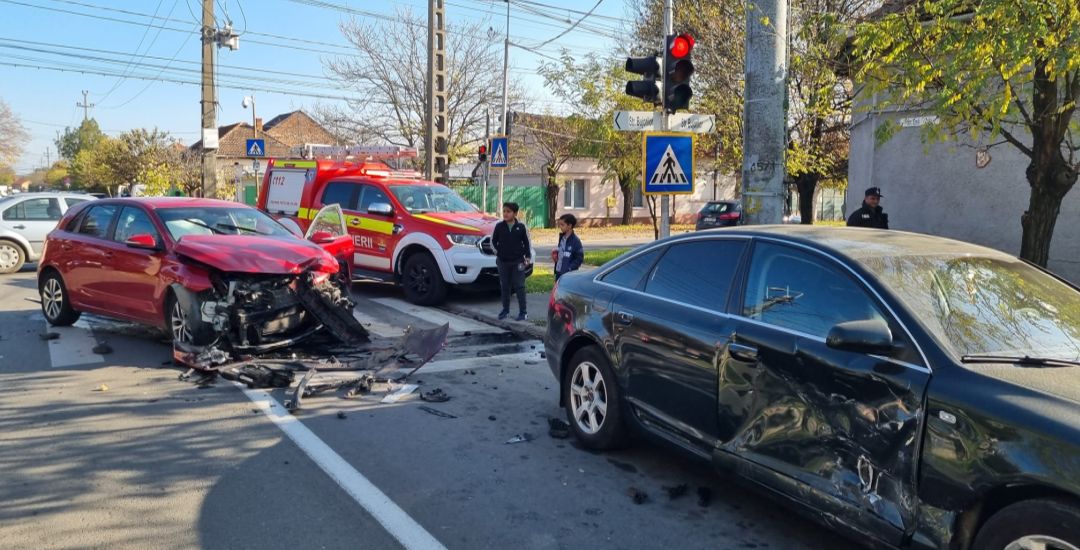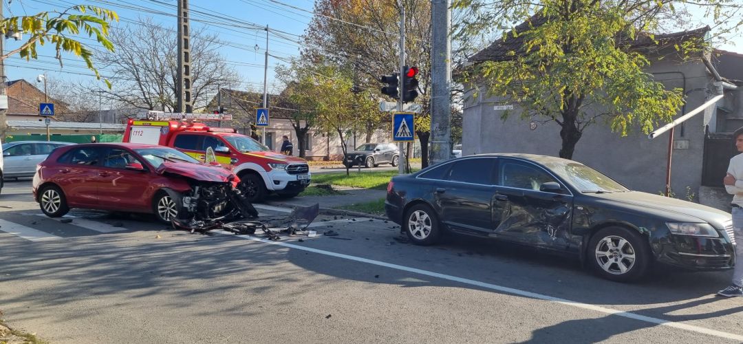 Soferul unui Hyundai mergea regulamentar pe strada Bujorilor, iar la intersectia cu Emile Zola a fost izbit de un Audi, al carui conducator a fortat trecerea pe rosu.