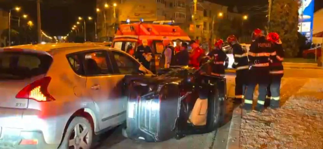 Au fost implicate două mașini, dintre care una s-a răsturnat.