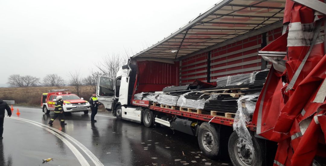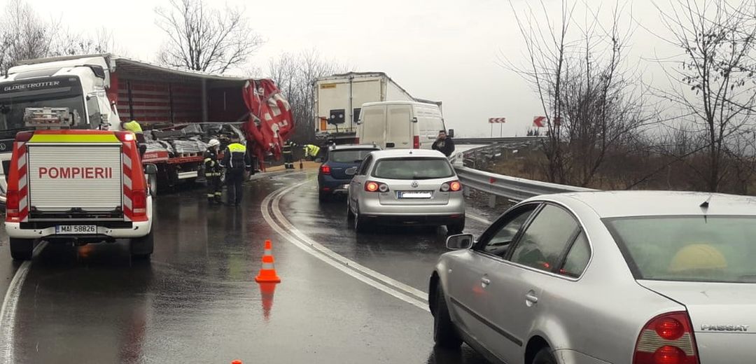 Conform Centrului Infotrafic al IGPR, remorca unuia dintre camioane s-a desprins de capul tractor si a lovit autotrenul care circula in spate.