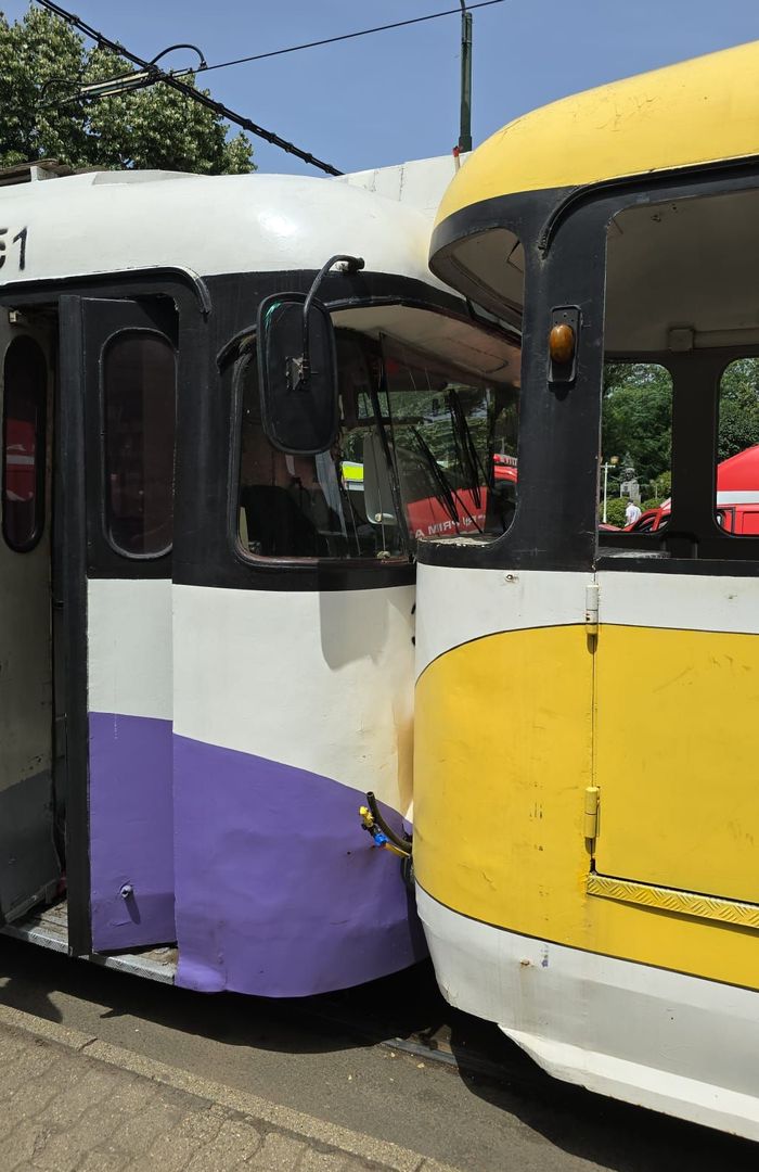 TIMISOARA. Un tramvai plin cu calatori s-a izbit de vagonul care, zilele acestea, circula pe liniile din oras pentru a stropi calea de rulare, pe canicula.