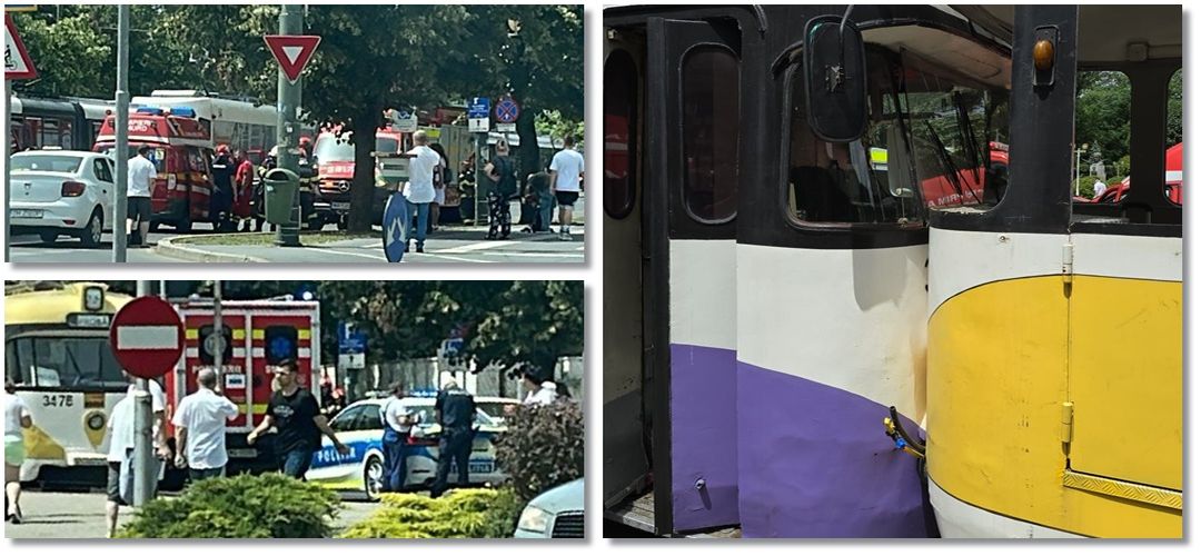Impactul a avut loc dupa coborarea de pe Podul din zona Maria, in timp ce tramvaiul cu calatori se afla in spatele utilajului, in dreptul statiei de la Catedrala Mitropolitana. Aparent, vatmanita nu a reusit sa opreasca garnitura plina de calatori la timp, astfel ca s-a izbit de utilajul folosit pentru stropire.