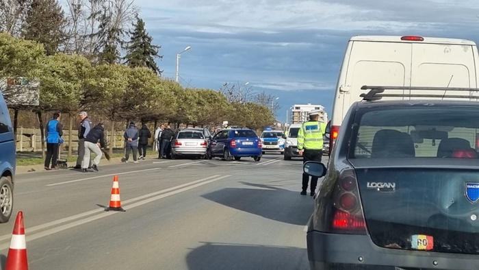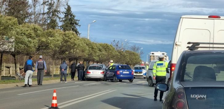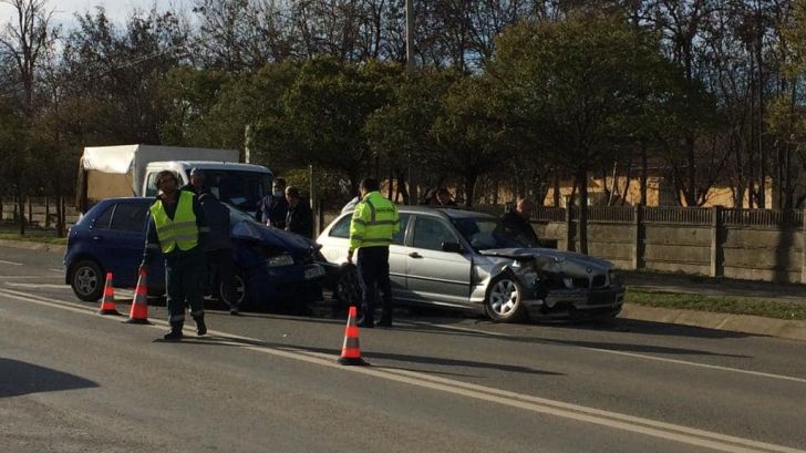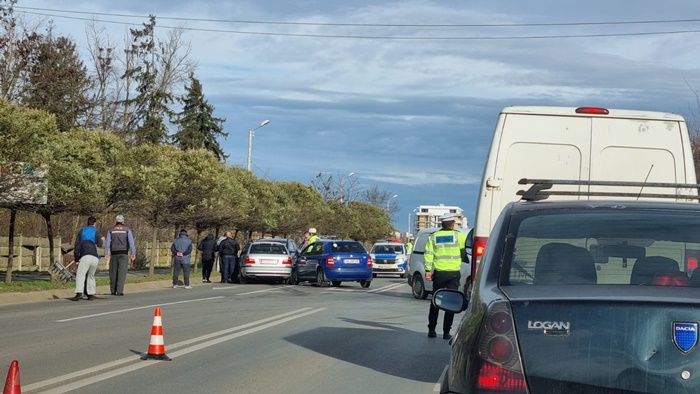 TIMISOARA. Accident de circulatie pe soseaua ce leaga Timisoara de Giroc, joi dimineata. 3 autoturisme s-au izbit intr-o intersectie cu un drum lateral.