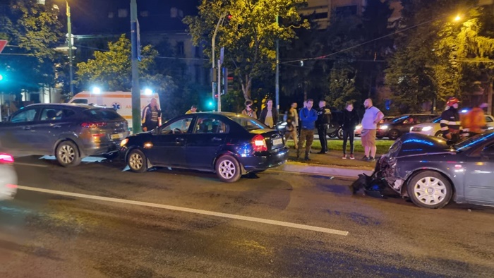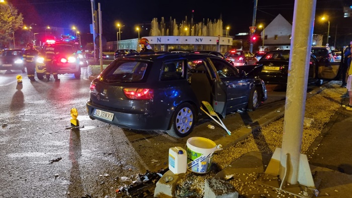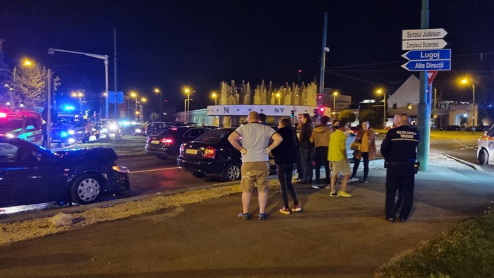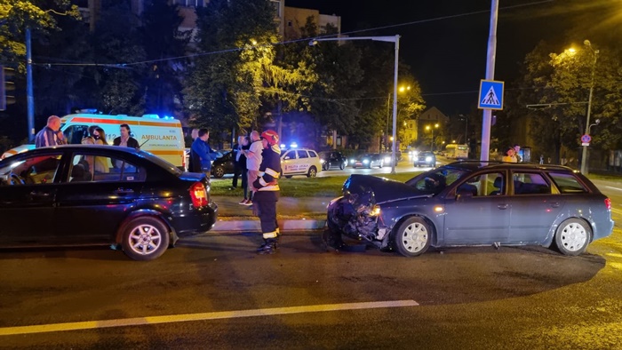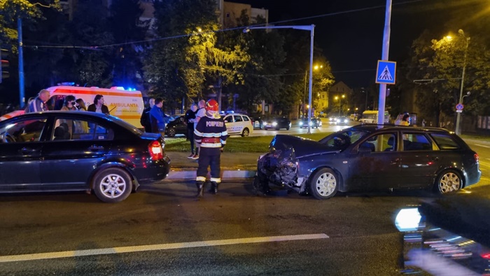 TIMISOARA. Accident in intersectia de la Punctele Cardinale, miercuri seara. Doua masini s-au izbit puternic dupa ce o soferita ar fi fortat culoarea rosie a semaforului, conform martorilor.