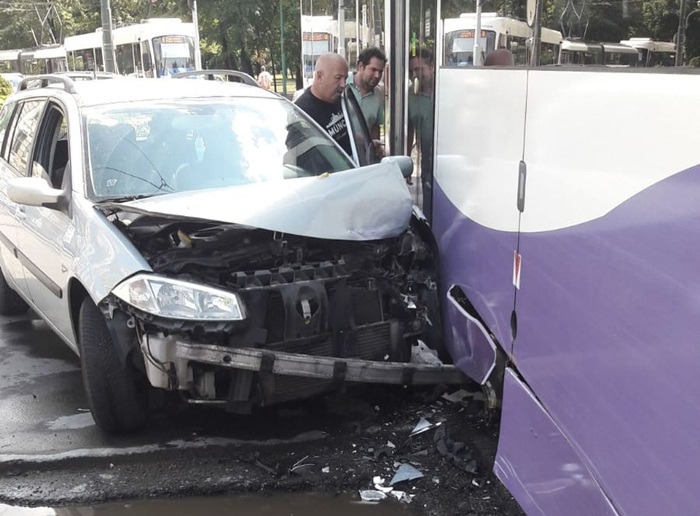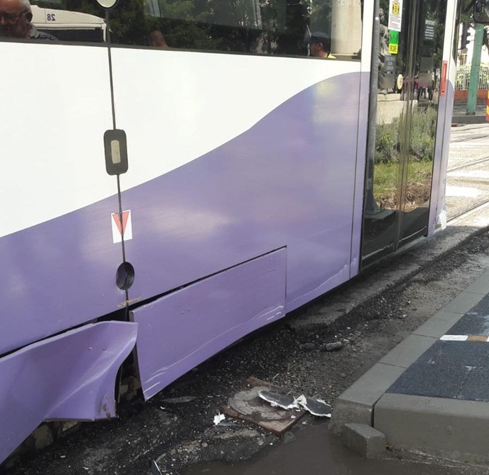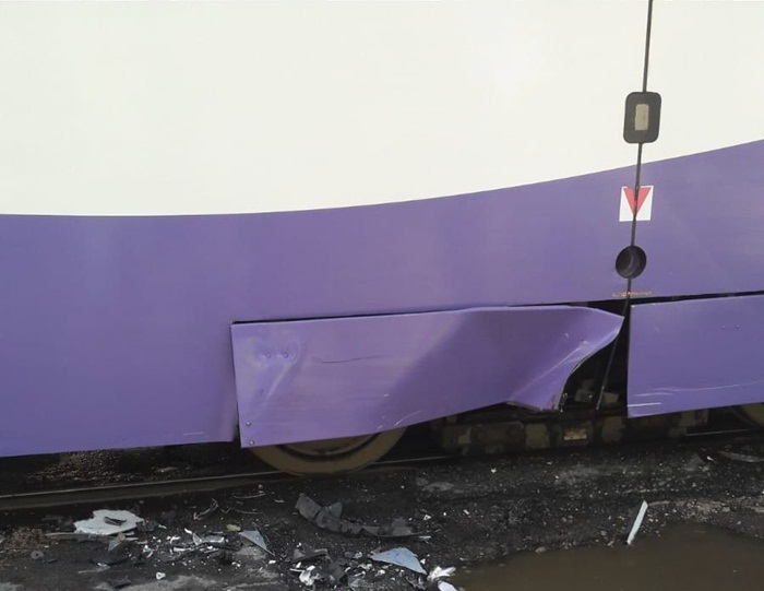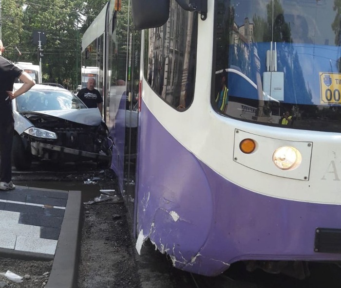 Un autoturism a izbit un tramvai Armonia aflat in mers, in fata Spitalului de Copii, pe bulevardul Regele Ferdinand.