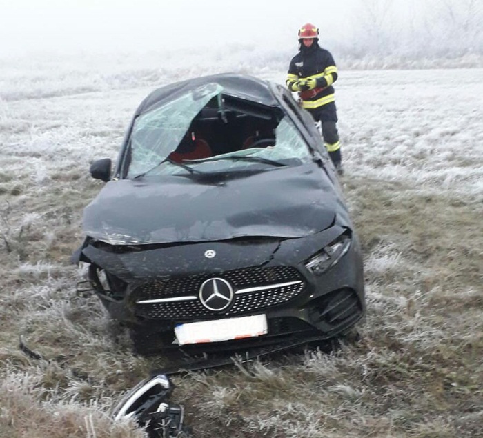 Accidentul a avut loc pe Calea Urseni. Soferul unui Mercedes a pierdut controlul bolidului si s-a rasturnat in afara partii carosabile. Alti soferi care treceau prin zona au sunat la 112, iart la fata locului a ajuns o autospeciala de interventie cu trei pompieri si o ambulanta SAJ.