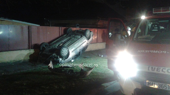 TIMISOARA. Grav accident de circulatie in zona Bazei Sportive 2 din vecinatatea stadionului Dan Paltinisanu din Timisoara. Un sofer a scapat masina de sub control, aceasta a izbit violent o bordura si s-a rasturnat.