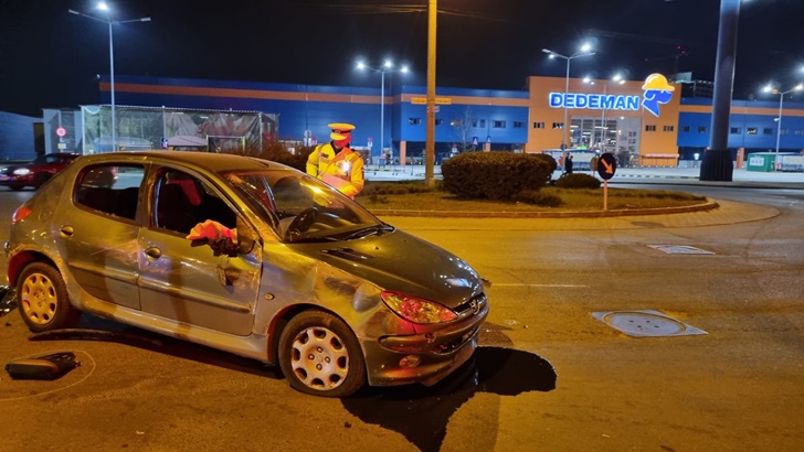 La un moment dat, in apropierea intersectiei cu strada Ion Roata, a pierdut controlul volanului, iar masina a izbit scuarul care separa sensurile de mers in dreptul unei treceri de pietoni, a lovit o a doua bordura si s-a rasturnat.