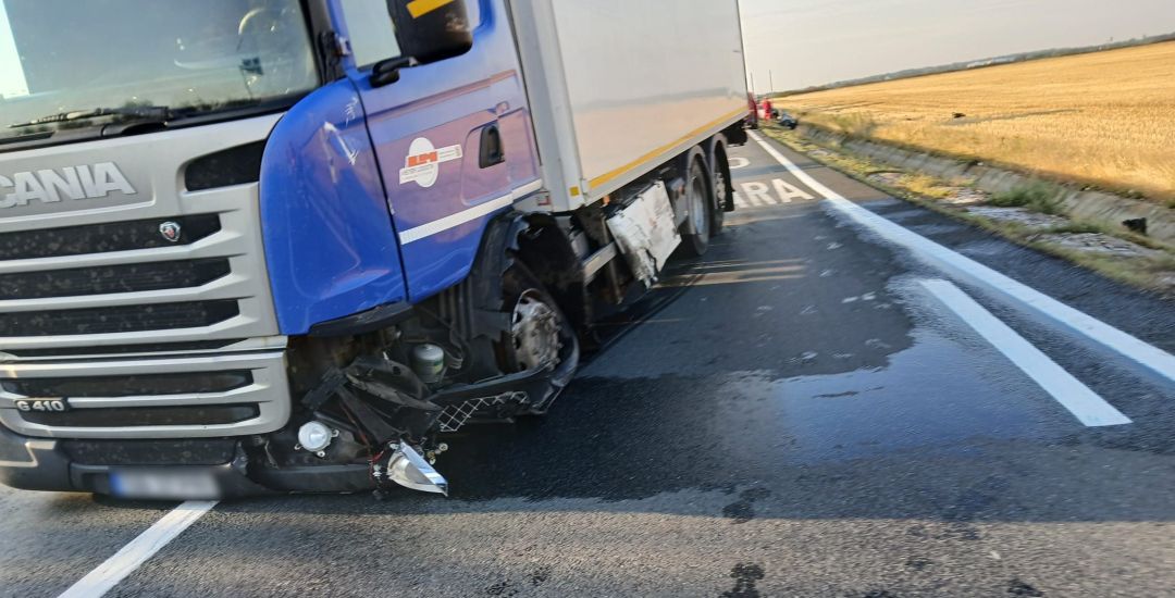 TIMIȘOARA. Grav accident de circulație, marți dimineață, lângă Timișoara. Două autotrenuri și o mașînă, în care se aflau 5 oameni, s-au izbit puternic in Remetea Mare la urcarea pe A1.