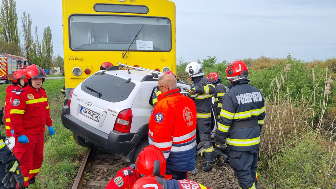 TIMISOARA. Accident luni dimineață nu departe de Timișoara. Un șofer s-a avântat peste liniile de cale ferată și a fost lovit de o garnitură.