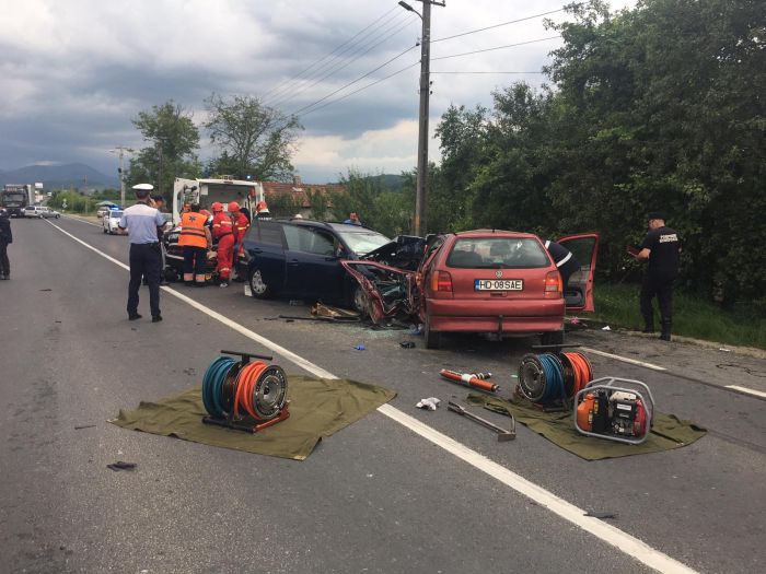 Barbatul vinovat de producerea accidentului a avut si el nevoie de ingrijiri medicale, astfel ca a fost preluat de urgenta de echipajele de salvare ajunse la locul accidentului si transportat in stare grava la spitalul din Hunedoara.