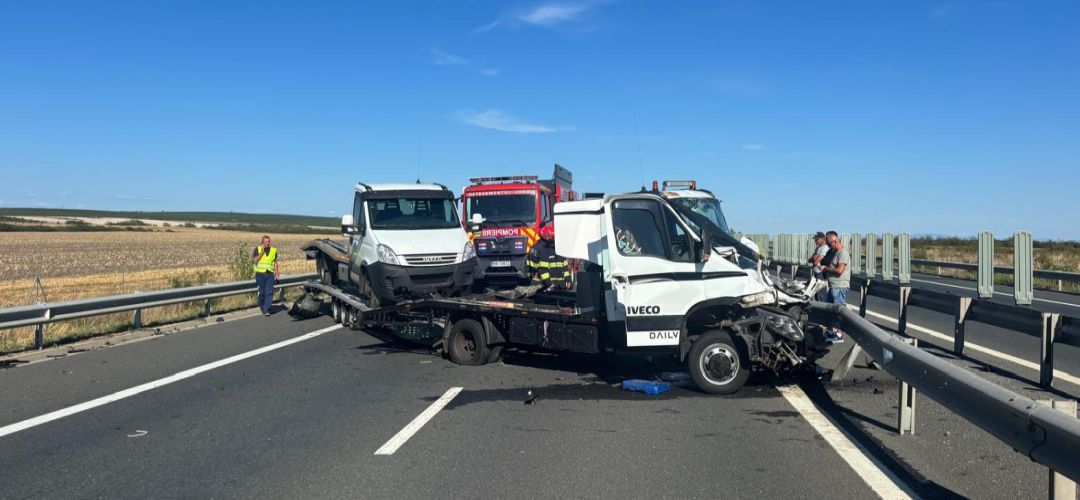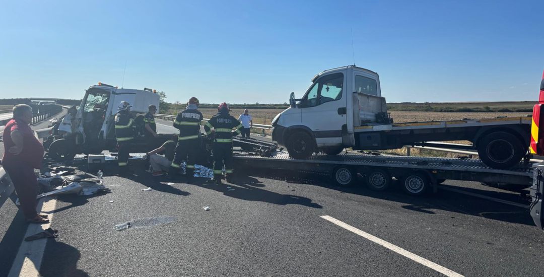 Accidentul a avut loc în zona localității Recaș, pe sensul de circulație către Timișoara. Șoferul autoutilitarei, care tracta o platformă pe care se afla un alt autovehicul, a pierdut controlul volanului, a lovit un tir și s-a oprit în parapetul median. În urma impactului, șoferul a rămas blocat între fiarele contorsionate.