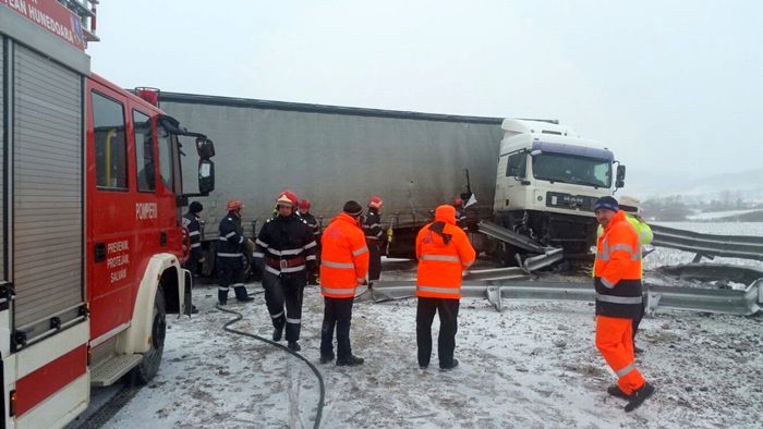Traficul a fost paralizat pe sensul Simeria – Orastie. Tirul s-a oprit de-a curmezisul soselei de mare viteza.