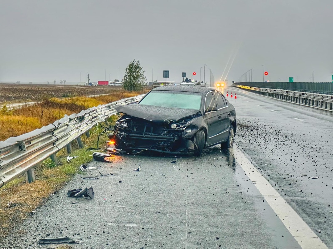 TIMISOARA. Accident, duminica dimineata, pe Autostrada Timisoara – Arad.