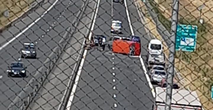 TIMISOARA. Accident sambata la pranz pe Autostrada Timisoara – Lugoj, dupa ce un microbuz cu 9 oameni s-a rasturnat.