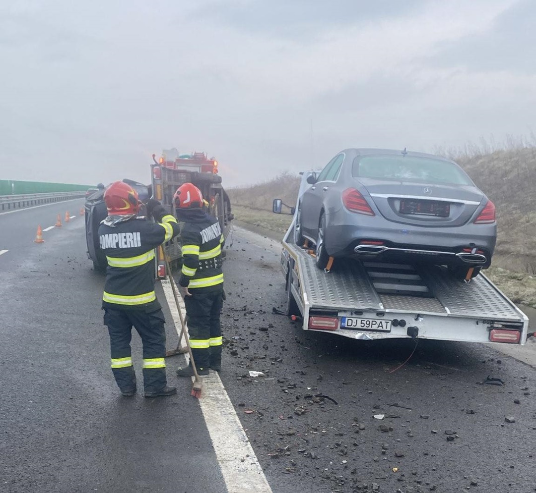 “Pompierii militari ai Detasamentului Orastie au fost solicitați sa intervina la un accident rutier care a avut loc pe autostrada A1, la km. 319, pe sensul de mers Orastie – Sebes.
