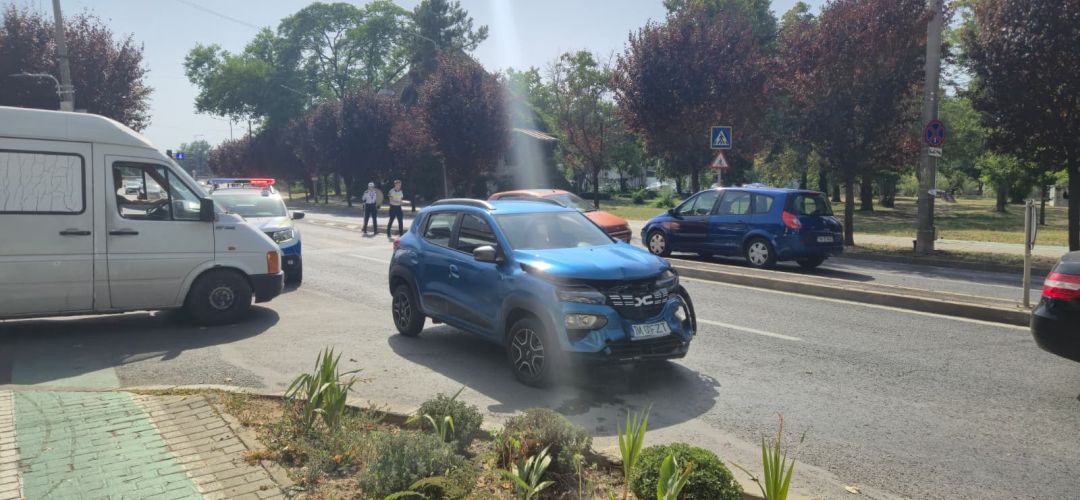 Șoferița unui autoturism nu a păstrat distanța regulamentară și a izbit din spate o altă mașină, pe care a proiectat-o pe scuarul de pe mijlocul drumului.