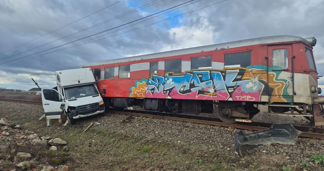 TIMISOARA. O camionetă a fost lovită de un tren marți, după-amiază, în apropiere de Timișoara.