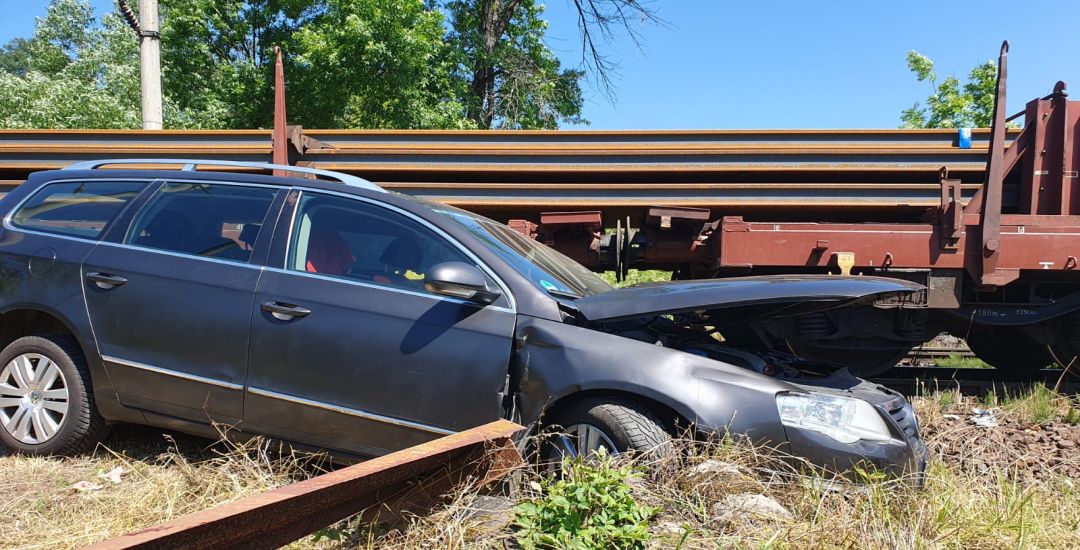 Masina condusa de acesta a fost insa izbita de un tren marfar, ce transporta sine de metal, si a fost aruncata intr-un parapet din apropierea caii ferate.
