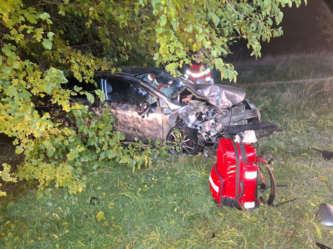 Doua masini s-au izbit violent la iesirea din localitatea Sagu, iar in urma impactului trei oameni au fost raniti.