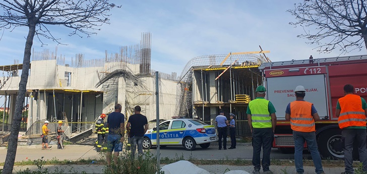 In timp ce echipa lucra la ridicarea unei constructii pe Calea Torontalului si turna beton la o placa, un cofrag de la etajul 1 s-a desprins si a cazut peste un muncitor.