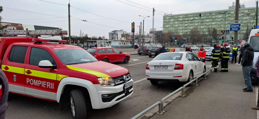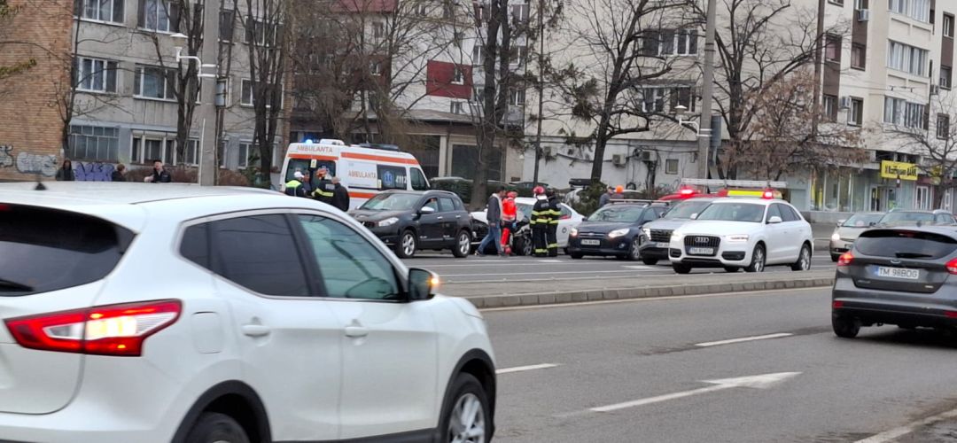 TIMISOARA. O mașină a fost distrusă și aproape proiectată pe trotuar, în urma unui accident, vineri după-amiază la Timișoara.