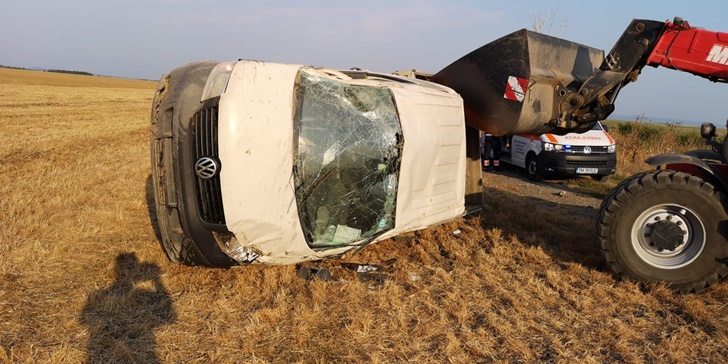 UPDATE: Potrivit IPJ Timis, soferul autoutilitarei ar fi pierdut controlul volanului intr-o curba la dreapta, iar dubita s-a rasturnat in camp. Soferul are 24 de ani si, conform politistilor, avea o alcoolemie de 1,31 miligrame/litru alcool pur in aerul expirat.