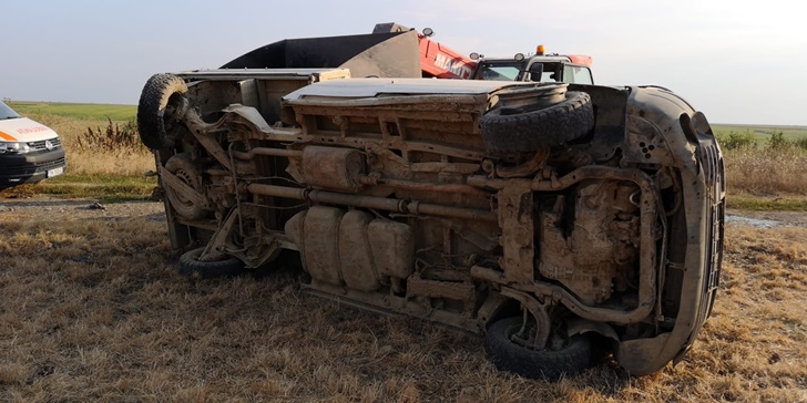 O autoutilitara in care se aflau 2 adulti si 4 copii s-a rasturnat in afara drumului, in satul Sipet din Timis.